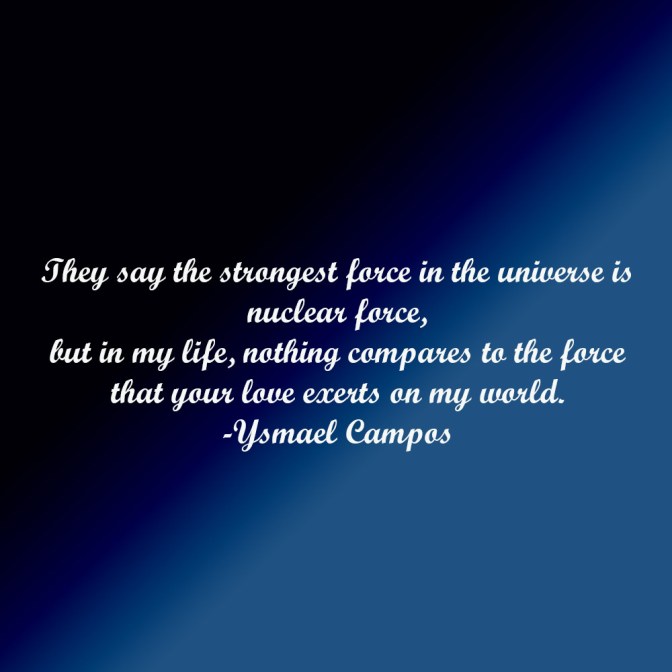 poetry Poem – The Force of Your Love TweetMore Click to share on Reddit (Opens in new window) Reddit Like Loading... Related Published by Ysmael Campos View all posts by Ysmael Campos